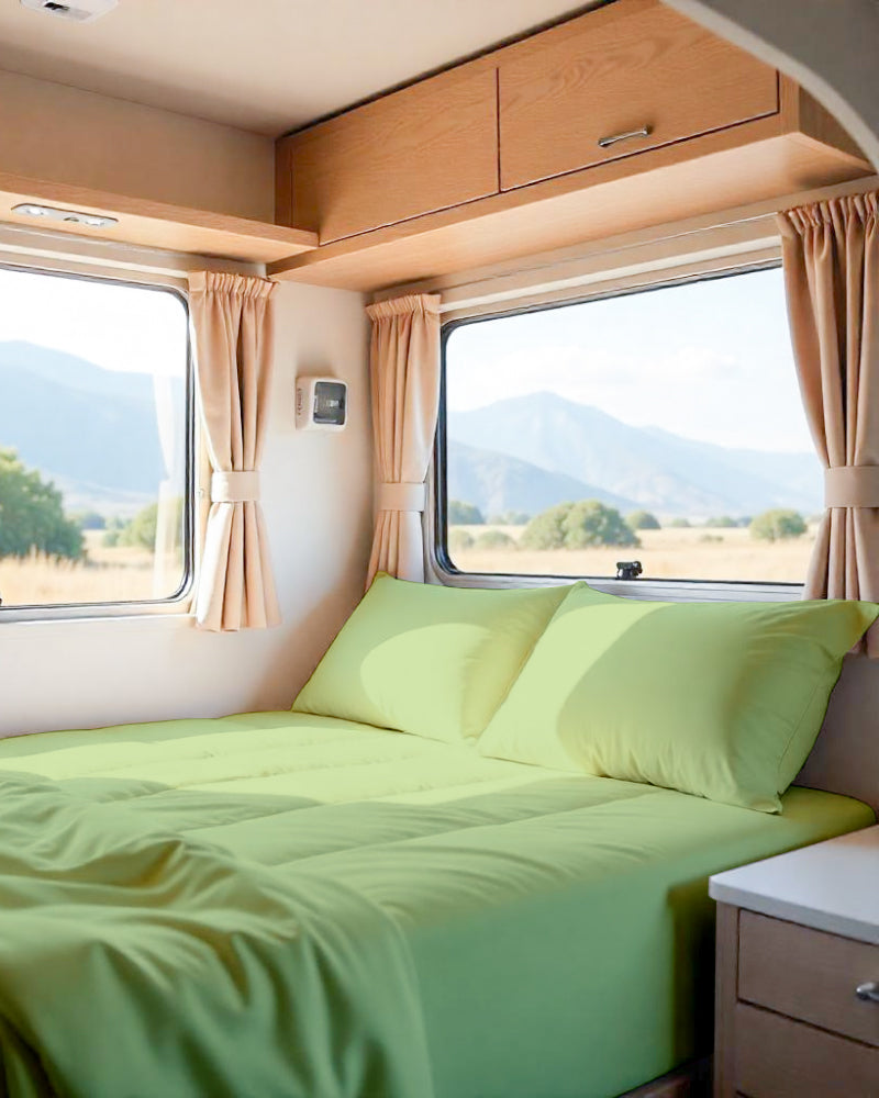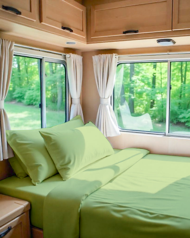 Transform your RV bed into a serene escape with this 4-Piece Microfiber RV Sheet Set. Designed with soft-touch performance and tailored precision, this set brings upscale comfort and effortless elegance to your home on wheels.